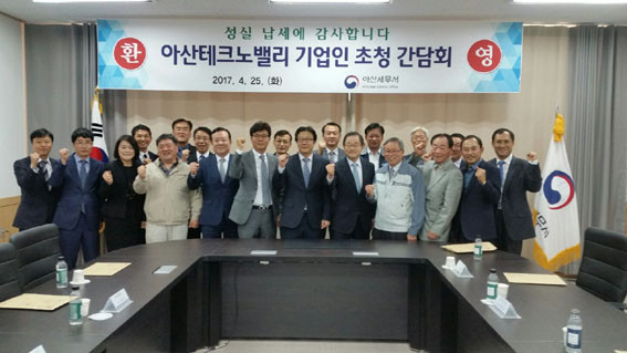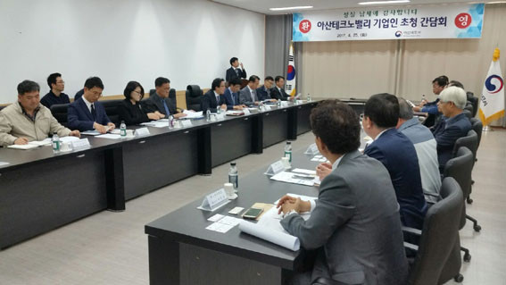 À̳¯ °£´ãȸ¿¡´Â ½Å¿ë¹® ÇùÀÇȸÀåÀ» ºñ·ÔÇÑ ¾Æ»êÅ×Å©³ë¹ë¸® »ê¾÷´ÜÁö ³» 13°³ ȸ»çÀÇ ´ëÇ¥¿Í °ü¸®»ç¹«¼ÒÀåÀÌ Âü¼®Çß°í, ¾Æ»ê¼¼¹«¼¿¡¼´Â ½ÅÀçºÀ ¼¼¹«¼ÀåÀ» ºñ·ÔÇÑ °¢ ºÎ¼ÀåµéÀÌ Âü¼®Çß´Ù.