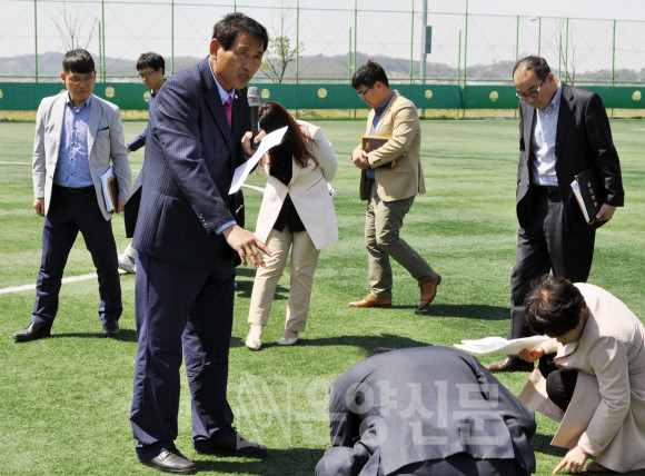 | | ¡è¡è 19ÀÏ, µÐÆ÷ Çϼö ó¸®Àå³» Ã౸Àå ÇöÀ广¹®¿¡¼ Çö ÀÇ¿øÀº ¡°¸¹Àº µ·À» ÅõÀÚÇØ ¸¸µé¾îÁø ÀÎÁ¶Àܵð Ã౸Àå¿¡ ÇÕ´çÇÑ ÃæÁøÀ縦 º¸ÃæÇØ º¸´Ù Å« ºÎ»óÀ» ¿¹¹æÇϰí È¿À²ÀûÀÎ °ü¸®¸¦ À§ÇÑ Á¶¼ÓÇÑ Á¶Ä¡°¡ ÇÊ¿äÇÏ´Ù¡±°í °Á¶Çß´Ù. | ¨Ï ¿Â¾ç½Å¹® | |
