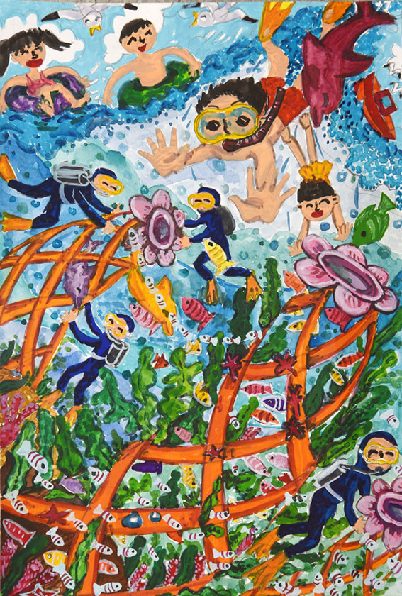 ¾î¸°À̱׸² ´ë»ó ¼ö»óÀÛÀ¸·Î ¼±Á¤µÈ ÃÖÈñÁÖ Çлý(°æ±â µ¿¸·ÃÊ 5³â)ÀÇ ¡®¹Ù´Ù´Â ¿ì¸®ÀÇ Ä£±¸¡¯´Â ¹Ù´Ù¿¡¼ ³îÀÌÇÏ´Â ¾î¸°À̵éÀÇ ¸ð½ÀÀ» ´Ù¾çÇÑ »öä·Î Àç¹ÌÀÖ°Ô Ç¥ÇöÇß´Ù.