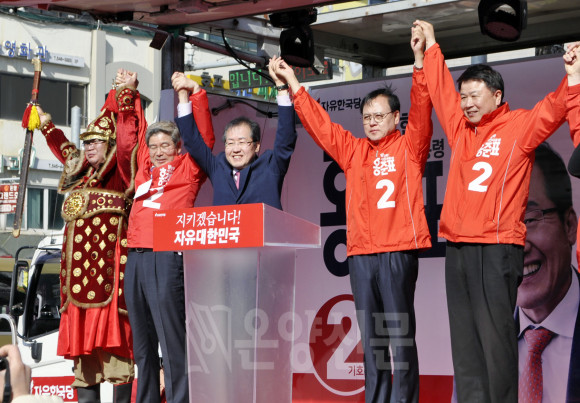 À̳¯ ´ë´Ù¼öÀÇ ÁöÁöÀÚµéÀº ¾î¸£½ÅµéÀ̾ú°í, È« Èĺ¸´Â Ãæ³²±ÇÀ» µ¹¸ç º¸¼öÃþ°ú Áßµµ º¸¼öÃþÀ» ²¸¾È±â À§ÇØ ³ë·ÂÇÒ °ÍÀ» ¹àÇû´Ù.