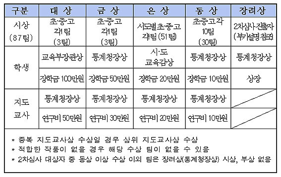 ¿ì¼öÇÑ ÀÛǰÀ» Á¦ÃâÇÑ Çлý¿¡°Ô´Â ±³À°ºÎÀå°ü»ó, Åë°èûÀå»ó ¹× ½Ã¡¤µµ±³À°°¨»ó°ú ÇÔ²² ÀåÇбÝÀ» ¼ö¿©ÇÑ´Ù.