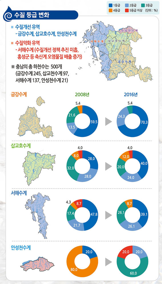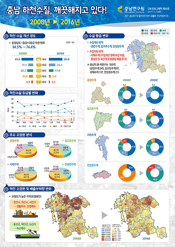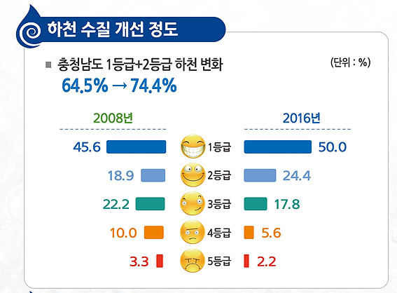 | | ¨Ï ¿Â¾ç½Å¹® | Áö³ 6¿ù 2ÀÏ Ãæ³²¿¬±¸¿øÀº µµ³» ÇÏõ ¼öÁú(2008³â, 2016³â)À» ºñ±³ ºÐ¼®ÇÑ ÀÎÆ÷±×·¡ÇÈÀ» ÅëÇØ ¡°Áö³ÇØ ±âÁØ 1¡¤2µî±Þ ÇÏõÀº 74.4%·Î 2008³â 64.5%¿¡ ºñÇØ ¾à10% ´Ã¾î³µ´Ù¡±¸ç ¡°Ãæ³²µµÀÇ Áö¼ÓÀûÀÎ ¹°ÅëÇÕ°ü¸®Á¤Ã¥¿¡ µû¸¥ ¸ð´ÏÅ͸µ°ú ¼öÁú °³¼± ³ë·ÂÀ¸·Î ¿À¿°¿øÀÌ ÁÙ¾ú±â ¶§¹®¡±À̶ó°í ¸»Çß´Ù.