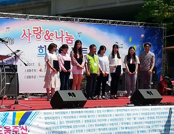À̳¯ ¿Â¾ç¿Âõ¿ª¿¡¼ ¿¸° »ç¶û°ú ³ª´® Èñ¸ÁÄܼƮ Áß ÀåÇÐ±Ý Àü´Þ½Ä¿¡¼ (»ç)³ª´®°ú±â»Ý ȸ¿øµéÀÌ ¸ðÀº ÈÄ¿ø±ÝÀº ¾Æ»ê½ÃÇູŰ¿òÁö¿ø´ÜÀ¸·ÎºÎÅÍ Ãßõ ¹ÞÀº 6¸íÀÇ °íµî»ý¿¡°Ô ÀåÇбÝÀ¸·Î Àü´ÞµÆ´Ù.