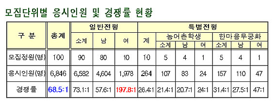 ¶ÇÇÑ ÀϹÝÀüÇüÀº 90¸í ¸ðÁý¿¡ 6õ582¸íÀÌ Áö¿ø, 73.1:1ÀÇ °æÀï·üÀ» º¸¿´À¸¸ç, ³²ÀÚ 80¸í ¸ðÁý¿¡ 4õ604¸íÀÌ Áö¿øÇØ 57.6:1, ¿©ÀÚ 10¸í ¸ðÁý¿¡ 1õ978¸íÀÌ Áö¿øÇØ 197.8:1ÀÇ °æÀï·üÀ» º¸¿´´Ù.