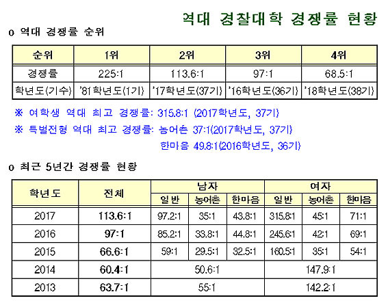 | | ¡è¡è ¡ã¿ª´ë °æÂû´ëÇÐ °æÀï·ü | ¨Ï ¿Â¾ç½Å¹® | | ÀÌó·³ 68.5:1ÀÇ ³ôÀº °æÀï·üÀ» ±â·ÏÇÑ °ÍÀº °æÂûÁ÷¿¡ ´ëÇÑ ÀÎ½Ä Çâ»ó ¹× °øÁ÷¼±È£ µî »çȸÇö»óÀÌ ¹Ý¿µµÈ °ÍÀ¸·Î ÆÇ´ÜµÈ´Ù. ƯÈ÷ 2010Çг⵵ºÎÅÍ 100:1À» ³ÑÀº ÀϹÝÀüÇü ¿©ÀÚÀÇ °æ¿ì ¿ÃÇØ¿¡µµ 197.8:1·Î ³ôÀº °æÀï·üÀ» º¸¿´´Ù.