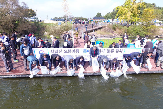 ±èºÀ¼® Áß¾Ó³»¼ö¸é¿¬±¸¼ÒÀåÀº ¡°À̹ø Á¾¾î ÀçÆ÷ȹÀº ±¹³» ÇÏõ¿¡¼ ÇѶ§ ¿ÏÀüÈ÷ »ç¶óÁ³´ø Á¾¾î ÀÚ¿øÀ» ´Ù½Ã µÇ»ì¸± ¼ö ÀÖ´Â °¡´É¼ºÀ» ÃÖÃÊ·Î È®ÀÎÇÏ´Â °è±â°¡ µÆ´Ù´Â Á¡¿¡¼ Å« Àǹ̰¡ ÀÖ´Ù.¡±¶ó¸ç, ¡°Á¾¾î Àΰø ¾ç½Ä ¹× ¹æ·ù µî Á¾¾î »ì¸®±â ÇÁ·ÎÁ§Æ®¸¦ Àû±Ø ÃßÁøÇÏ¿© ÇÏ·ç »¡¸® ¿ì¸® ÇÏõ¿¡ Á¾¾î°¡ µÇµ¹¾Æ¿Ã ¼ö ÀÖµµ·Ï ³ë·ÂÇϰڴÙ.¡±¶ó°í ¸»Çß´Ù.