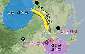 ƯÈ÷, ¿ÀÈ£Ã÷Å©ÇØ µ¿Âʰú Áß±¹ ºÏºÎ¿¡ ¹ß´ÞÇÑ ±â¾Ð´ÉÀ¸·Î ÀÎÇØ µ¿¾Æ½Ã¾Æ ºÎ±ÙÀÇ °ø±â È帧ÀÌ Á¤Ã¼µÇ°í, Áö»óºÎ±ÙÀ¸·Î ¿ÀÌ ½×ÀÌ¸é¼ ¿ì¸®³ª¶ó ÁÖº¯ÀÇ °í¿ÂÇö»óÀÌ À¯ÁöµÇ°í ÀÖ´Ù´Â °Í.