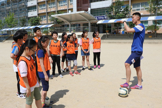 ¼±¼ö´ÜÀº Ã౸°ø ¼ú·¡Àâ±â, µå¸®ºí À̾î´Þ¸®±â µî Ã౸¿Í ³îÀ̰¡ °áÇÕµÈ °ÔÀÓÀ» ÁøÇàÇØ ¾î¸°À̵éÀÇ Èï¹Ì¸¦ À¯¹ßÇß´Ù. ¶ÇÇÑ Ã౸ÀÇ ±âº»±âÀÎ µå¸®ºí°ú ½´ÆÃ ¹æ¹ýÀ» Àü¼öÇϱ⵵ Çß´Ù. ¸¶Áö¸·¿¡´Â °¥°í ´ÛÀº ±âº»±â¸¦ ¹ÙÅÁÀ¸·Î ¹Ì´Ï°ÔÀÓÀ» ÆîÃÄ ¾î¸°À̵éÀÌ ¸ÚÁø ±â·®À» »Ë³¾ ¼ö ÀÖµµ·Ï Çß´Ù.