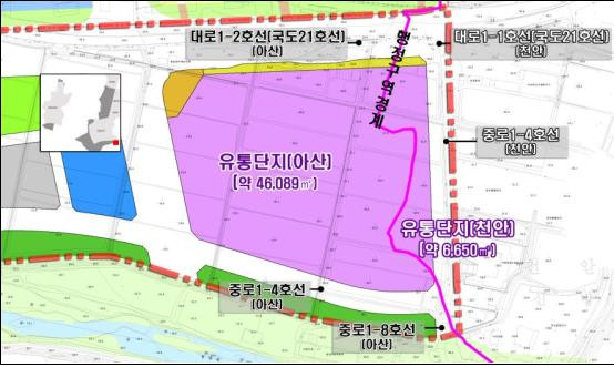 À¯Åë´ÜÁö´Â ¾Æ»ê½Ã ¹è¹æÀ¾ È޴븮 24¸¸ 6õ802§³, õ¾È½Ã ½Å¹æµ¿ 1¸¸ 5õ533§³ÀÇ ¸éÀûÀÌ Æ÷ÇԵŠÀÖ´Ù. ÇùÀÇȸ´Â ¡®Ãµ¾È ½Å¹æµ¿ ¼ÒÀç 11ÇÊÁö(6õ978§³)¸¦ ¾Æ»ê ¹è¹æÀ¾ È޴븮·Î ÆíÀÔÇÏ´Â Á¶Á¤¾È¡¯À» Áö³ÇØ ¾ç ½ÃÀÇȸ¿¡ »óÁ¤ÇßÀ¸³ª, õ¾È½ÃÀÇȸ°¡ ÀÌ °÷¿¡ ³óÇùÀÇ ³ó»ê¹°À¯Åë¼¾ÅÍ ÀÔÁ¡À¸·Î Áö¿ª»ó±ÇÀÇ ÇÇÇØ¿Í ¼¼¼ö¼Õ½ÇÀÌ ¿ì·ÁµÈ´Ù´Â ÀÌÀ¯·Î ¡®°æ°è Á¶Á¤¾È¡¯À» ºÎ°áÇÔ¿¡ µû¶ó ¹«»êµÆ¾ú´Ù.