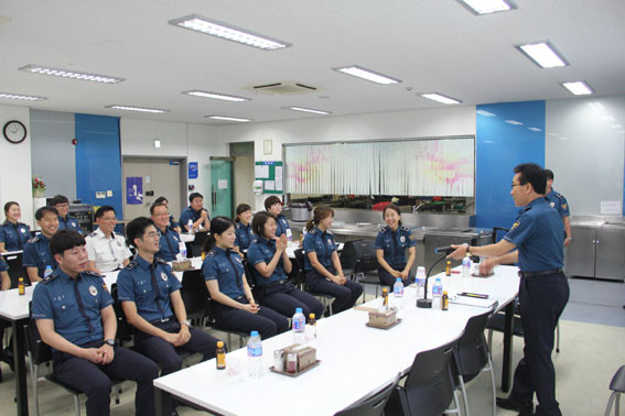 ÀÌ ³¯ Çà»ç´Â Á÷¿ø ÆíÀǸ¦ À§ÇØ, ±èȲ±¸ ¼ÀåÀÇ Áö½Ã·Î ȸÀǽÇÀÌ ¾Æ´Ñ °æÂû¼ ±¸³»½Ä´ç¿¡¼ Æí¾ÈÇÑ ºÐÀ§±â ¼Ó¿¡ ÁøÇàµÅ Âü¼®ÀÚµéÀÌ ¹Ý±â´Â ºÐÀ§±â¿´´Ù.