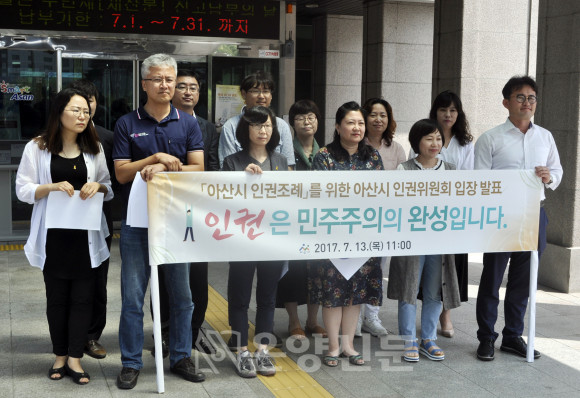 ¿ì»ï¿ ¾Æ»ê½ÃÀαÇÀ§¿øÀåÀº ¡°¾Æ»ê½Ã ÀαÇÁ¶·Ê´Â ¹ÎÁÖÁÖÀÇ ¿øÄ¢¿¡ µû¶ó ½ÃÀåÀÌ °ø¹«¿ø¿¡ ´ëÇØ ÀαDZ³À°À» ÇÏ´Â µî ½Ã¹ÎÀÇ ÀαÇÀ» Á¸ÁßÇÏ°í º¸È£Çϵµ·Ï ³ë·ÂÇÒ °ÍÀ» ±ÔÁ¤ÇÑ °ÍÀ¸·Î ¸ðµç ½Ã¹ÎÀÌ Àΰ£ÀÇ °¡Ä¡¸¦ Á¸Áß¹Þµµ·Ï Çϰí ÀÖ´Ù. ±×·¯³ª Á¾±³´ÜüµéÀÌ ³ª¼¼ ÀαÇÁ¶·Ê°¡ µ¿¼º¾Ö¸¦ ÁÖÀåÇÑ´Ù¸ç Ȳ´çÇÑ ±Ëº¯À» ´Ã¾î³õ°í ÀÖ´Ù¡±°í Çß´Ù.