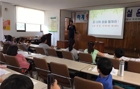 Ư°¿¡¼´Â ¾ÆÀ̵éÀÇ ´«³ôÀÌ¿¡ ¸ÂÃç ÁýÁßÀ» À§ÇØ Çϸð´ÏÄ«·Î ¿¬ÁÖ¸¦ ÇÏ¸ç µ¿¿ä·Î ¼ö¾÷À» ½ÃÀÛÇßÀ¸¸ç Áø·ÎÀνĴܰèÀÎ Çлýµé¿¡°Ô ²ÞÀÌ ÀÖ´Ù¸é ²ÞÀ» ÀÌ·ç±â À§ÇØ ±àÁ¤ÀûÀÎ »ç°í¿Í ³ë·ÂÀÌ µÚµû¶ó¾ßÇÔÀ» °Á¶Çß´Ù.
