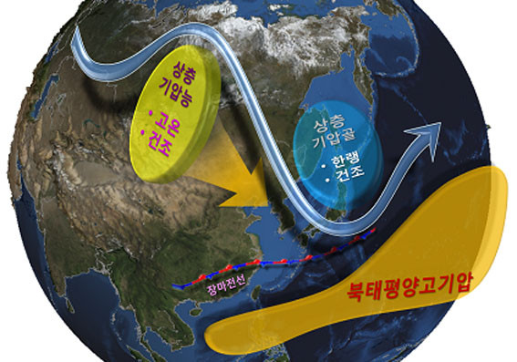 ¸ù°ñ ºÏÂÊ¿¡¼ Áö¼ÓÀûÀÎ °¡¿·Î ¶ß°Å¿öÁø °ø±â°¡ ´ë±â »óÃþÀ¸·Î Àü´ÞµÅ ±â¾Ð´ÉÀÌ Çü¼º¡¤À¯ÁöµÇ°í, ÀÌ ±â¾Ð´É µ¿ÂÊ °¡ÀåÀÚ¸®¸¦ µû¶ó »óÃþ ÇѱâÀÇ Áß½ÉÀÌ ¿ì¸®³ª¶ó µ¿ÂÊ¿¡ À§Ä¡ÇÏ¸é¼ À帶Àü¼±ÀÇ ºÏ»óÀ» ÀúÁöÇϰí, ¸ù°ñ ºÎ±ÙÀÇ ¶ß°Å¿î °ø±â°¡ ¿ì¸®³ª¶ó·Î À̵¿ÇÏ¸é¼ °í¿Â °ÇÁ¶ÇÑ ³¯¾¾°¡ À̾îÁö°í ÀÖ´Ù´Â °ÍÀÌ´Ù.
