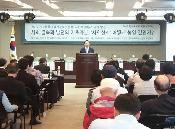 ¡®»çȸ°á¼Ó°ú ¹ßÀüÀÇ ±âÃÊÀÚº», ¡®»çȸ ½Å·Ú¡¯ ¾î¶»°Ô ³ôÀÏ °ÍÀΰ¡¡¯¸¦ ÁÖÁ¦·Î ¿¸° À̳¯ Åä·Ðȸ´Â ±¹¹Î´ëÅëÇÕÀ§¿øÈ¸, (Àç)Çູ¼¼»ó, »ê¾÷Á¤Ã¥¿¬±¸¿øÀÌ °øµ¿ÁÖÃÖÇϰí ÇàÁ¤ÀÚÄ¡ºÎ°¡ ÈÄ¿øÇß´Ù.