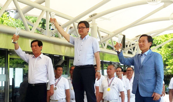 ¾Æ»êÀÇ ±Ãµµ¸¦ ³Î¸® Ȱ¼ºÈ½Ã۱â À§ÇØ ³ë·ÂÇϰí, ³²µé º¸´Ù ¸¹Àº °í¹Î°ú ³ë·ÂÀ» ¾Æ³¢Áö ¾ÊÀº ¼ûÀº °ø·ÎÀÚ´Â ¹Ù·Î ±è¿µ±æ(62³â»ý) ¾Æ»ê±ÃµµÇùȸÀåÀ¸·Î, »çºñ¸¦ ÅÐ¾î »ó±ÝÀ» ÁÖ¸ç ¼±¼öµé¿¡°Ô °Ý·Á¸¦ Çϴµ¥ µ·µµ ½Ã°£µµ ¾Æ±õÁö ¾Ê¾Ò´Ù°í ÇÑ´Ù.