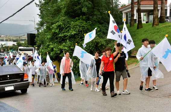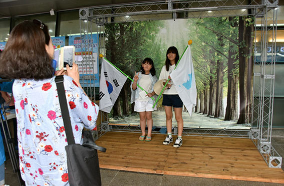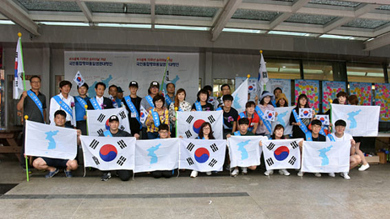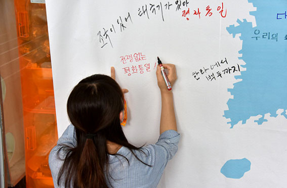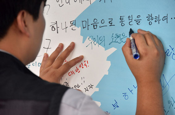 ÀÌ¾î ¿ÀÈÄ2½ÃºÎÅÍ´Â ±¹¹ÎÅëÇÕ°ú ÆòÈÅëÀÏ¿¡ ´ëÇÑ ²Þ°ú Èñ¸ÁÀ» ¾È°í ä¼®° ³Ê¸¥ °¹¹ÙÀ§(¹Ý¼®)À§¿¡¼ À̰÷À» ãÀº °ü±¤°´µé°ú ÇÔ²² űرâ¿Í Çѹݵµ±â¸¦ Èçµé¸ç, ¼Õ¿¡ ¼ÕÀ» Àâ°í ¡®ÇÔ²²°¡ÀÚ ÅëÇÕ°ú ÅëÀϷΡ¯¶ó´Â ±¸È£¿Í ÇÔ²² ¡®¿ì¸®ÀÇ ¼Ò¿øÀº ÅëÀÏ¡¯ ³ë·¡¸¦ ÇÕâÇß´Ù.
