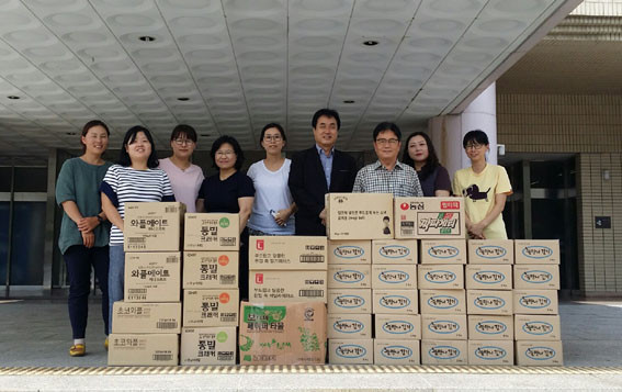 À̳¯ Çà»ç¿¡´Â ¢ß»ï¾ÆÀÎÅͳ»¼Å³¯(´ëÇ¥ äȫ¿ë), ¿µ³óȸ»ç¹ýÀÎ ¢ß´Ã¸¸³ª½Äǰ(´ëÇ¥ ±ÇÀμø), õ¾ÈÁ߾ӿ丮Á¦°úÁ¦»§Çпø(´ëÇ¥ ±è¼±Èñ), ¿ÂÁÖ°õÅÁ(´ëÇ¥ ±èº´°ü) 4°³ ¾÷ü°¡ Âü¿©ÇØ °úÀÚ, ±èÄ¡, »§, °õÅÁ µî 100¸¸ ¿ø »ó´çÀÇ ½ÄǰÀ» ¾Æ»ê½ÃÇູŰ¿òÁö¿ø´Ü¿¡ Àü´ÞÇß´Ù.
