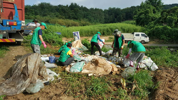 ȸ¿ø 10¿©¸íÀÌ Âü¿©ÇØ ¿Â¾ç6µ¿ °ü³» ³ó°æÁö¿¡ ¹ö·ÁÁø Æóºñ´Ò ¹× ³ó¾àº´ µî ÀçȰ¿ëǰ 4ÅæÀ» ¼ö°ÅÇϸç, ÀÚ¿ø ÀçȰ¿ëÀº ¹°·Ð ȯ°æ¿À¿° ¿¹¹æ¿¡µµ Å« º¸ÅÆÀÌ µÆ´Ù.