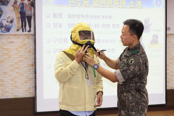 À̳¯ ÈÆ·ÃÀº Àü½Ã »óȲÀ» ´ëºñÇÏ¿© È»ý¹æ °ø°Ý ½Ã¿¡ »ýÁ¸ ¹× ´ë󹿹ýÀ» ¹è¾çÇÒ ¼ö ÀÖµµ·Ï 3585ºÎ´ë 2´ë´ë Áö¿øÀ¸·Î Á÷¿øµéÀÌ ½ÇÁ¦ ¹æµ¶¸é Âø¿ë¹æ¹ý µîÀ» ±³À°ÇÏ´Â ¹æ½ÄÀ¸·Î ÁøÇàµÆ´Ù.