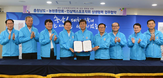 8¿ù 28ÀÏ ¿ÀÀü Ãæ³²µµÃ» »óȲ½Ç¿¡¼ ¾ÈÈñÁ¤ Ãæ³²Áö»ç¿Í ³óÇùÁß¾Óȸ ±èº´¿ø ȸÀå, À̵¿ÇÊ Á¶Á÷À§¿øÀå µîÀÌ Âü¼®ÇÑ °¡¿îµ¥ ÁøÇàµÈ À̹ø Çù¾à½ÄÀº 2017±Ý»ê¼¼°èÀ묽ºÆ÷ÀÇ ¼º°ø°³ÃÖ¸¦ À§ÇÑ »óÈ£Çù·Â Â÷¿ø¿¡¼ ¸¶·ÃµÆ´Ù°í ¹àÇû´Ù.