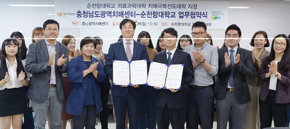 ¼øÃµÇâ´ëÇб³´Â 8¿ù 28ÀÏ ¿ÀÈÄ1½Ã, ±³³» ÀÇ·á°úÇдëÇÐ ¼¼¹Ì³ª½Ç¿¡¼ ´ëÇÐÀÌ ¡®Ä¡¸Å±Øº¹ ¼±µµ´ëÇС¯À¸·Î ÁöÁ¤µÊ¿¡ µû¶ó, ÃæÃ»³²µµ ±¤¿ªÄ¡¸Å¼¾ÅÍ¿Í ¼ÕÀâ°í °ü·Ã±³À°°ú Áö¿ø»ç¾÷ ÃßÁøÀ» À§ÇÑ Çù¾àü°áÀ» °¡Á³´Ù°í ¹àÇû´Ù.