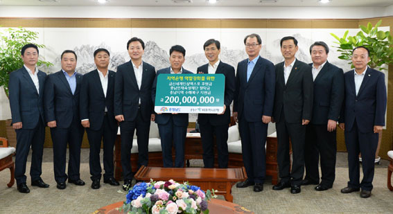 Ãæ³²µµ´Â 7¿ù 26ÀÏ µµÃ» Á¢°ß½Ç¿¡¼ ¾ÈÈñÁ¤ Áö»ç¿Í ÇÔ¿µÁÖ ÇϳªÀºÇàÀå, ·ù¼ø±¸ Ãæ³²ÀÎÀçÀ°¼ºÀç´Ü »óÀÓÀÌ»ç, ±è½ÃÇü ±Ý»êÀ묽ºÆ÷Á¶Á÷À§ »ç¹«ÃÑÀåÀÌ Âü¼®ÇÑ °¡¿îµ¥ ÈÄ¿ø±Ý Àü´Þ½ÄÀ» °³ÃÖÇß´Ù°í ¹àÇû´Ù.