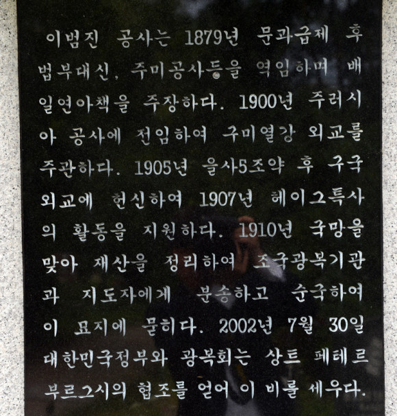 À̹üÁø ¼±»ýÀº ´ëÇÑÁ¦±¹ ÁÖ·¯½Ã¾Æ °ø»ç·Î, À»»ç´Á¾à¿¡ Ç×°ÅÇϰí ÇìÀÌ±×Æ¯»ç¸¦ ÈÄ¿øÇßÀ¸¸ç, µ¶¸³¿îµ¿ ÀÚ±ÝÀ» Áö¿øÇÏ´Ù °æ¼ú±¹Ä¡ ¼Ò½ÄÀ» µè°í ¼ø±¹Çß´Ù.