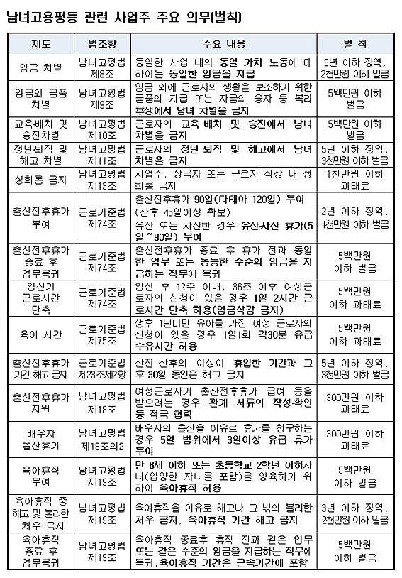 - µ¿Àϳ뵿À» ÇÏ´Â ¿©¼º±Ù·ÎÀÚ¿¡°Ô ½Ä´ë Â÷µî Áö±Þ, ÇϰèÈÞ°¡ºñ Áö±Þ½Ã ³²³àÂ÷º° µî »ç¹ýó¸®(°íÆò¹ý Á¦9Á¶)