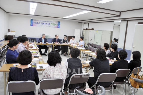 À̳¯ °£´ãȸ´Â À̸í¼ö ±¹È¸ÀÇ¿ø, À̱â¾Ö¡¤ ÀÌ¿µÇØ ¾Æ»ê½ÃÀÇ¿ø°ú Áö¿ª¾Æµ¿¼¾ÅÍÀå 20¿©¸íÀÌ Âü¼®ÇØ Áö¿ª¾Æµ¿¼¾ÅÍÀÇ ¾î·Á¿òÀ» È£¼ÒÇϸç Á¤ºÎÀÇ Áö¿øÀÌ Àý½ÇÇÏ´Ù°í ¿äûÇß´Ù.