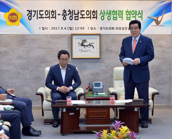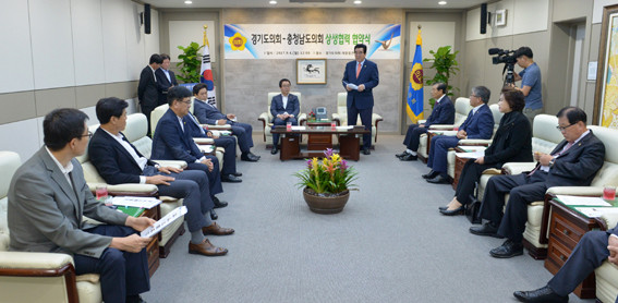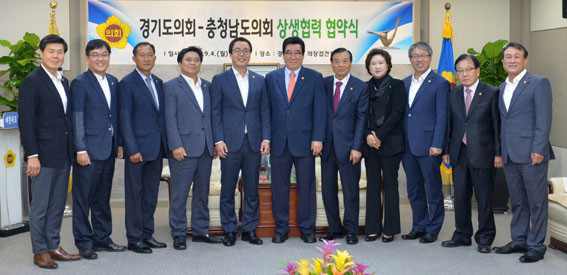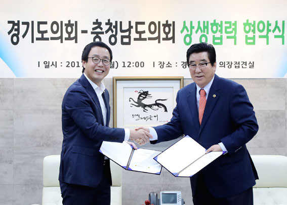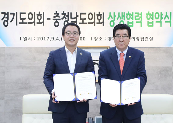 À±¼®¿ì Ãæ³²µµÀÇȸ ÀÇÀå°ú Á¤±â¿ °æ±âµµÀÇȸ ÀÇÀåÀº 9¿ù 4ÀÏ °æ±âµµÀÇȸ Á¢°ß½Ç¿¡¼ »ó»ýÇù·ÂÀ» °ñÀÚ·Î ÇÑ ¾çÇØ°¢¼(MOU)¸¦ ü°áÇß´Ù°í ¹àÇû´Ù.