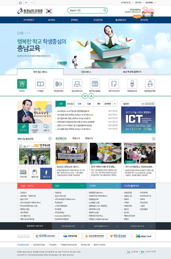 ½Ã½ºÅÛ ÅëÇÕµµ °ÈÇÑ´Ù. ±âÁ¸¿¡ µµ±³À°Ã» ȨÆäÀÌÁö¿Í ºÐ¸®ÇØ ¿î¿µÇÏ´ø ¿Â¶óÀÎ ´º½º Ãæ³²¿¡µàÀÖ½´, ±â·Ï°ü, Ãë¾÷Áö¿ø¼¾Å͸¦ ÅëÇÕÇØ ±â°ü°ú Çб³º° ¼Ò½ÄÀÌ Àϸñ¿ä¿¬ÇÏ°Ô º¸ÀÏ ¼ö ÀÖµµ·Ï ±â´ÉÀÌ °³¼±µÈ´Ù.