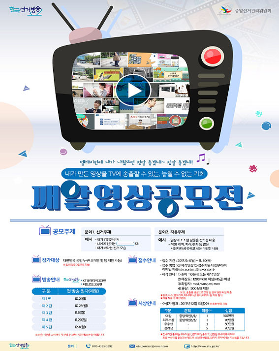 Áß¾Ó¼±°Å°ü¸®À§¿øÈ¸´Â ±¹¹ÎÀÌ Á÷Á¢ ¡®»î°ú ¼±°Å¡¯¿¡ ´ëÇØ À̾߱âÇÑ ¿µ»óÀ» Çѱ¹¼±°Å¹æ¼ÛÀ» ÅëÇØ ³Î¸® °øÀ¯ÇÏ°í ¼ÒÅëÇϱâ À§ÇØ ¡®½ÃûÀÚ°¡ ¸¸µå´Â ±ú¾Ë ¿µ»ó¡¯À» °ø¸ðÇÑ´Ù.