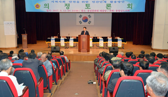 Ãæ³²µµÀÇȸ´Â 9¿ù 13ÀÏ È«¼º¹®È¿ø¿¡¼ ¡®Áö¿ª»çȸ ¾ÈÀüÀ» À§ÇÑ ¹Î°£´Üü Ȱ¿ë¹æ¾È¡¯À» ÁÖÁ¦·Î ÀÇÁ¤Åä·Ðȸ¸¦ °³ÃÖÇß´Ù°í ¹àÇû´Ù.