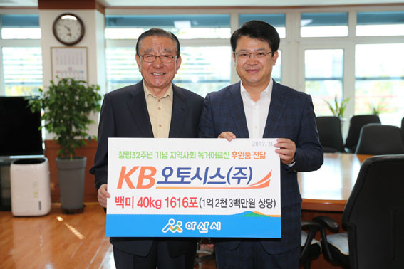 | | ¡è¡è ¡ã¡´»çÁø ¿ÞÂʺÎÅÍ¡µ ±è¿ë¿õ KB¿ÀÅä½Ã½º ȸÀå°ú º¹±â¿Õ ¾Æ»ê½ÃÀåÀÌ ±â³äÃÔ¿µÀ» Çϰí ÀÖ´Ù. | ¨Ï ¿Â¾ç½Å¹® | | ¾Æ»ê½Ã À½ºÀ¸é¿¡ ¼ÒÀçÇϰí ÀÖ´Â KB¿ÀÅä½Ã½º(ÁÖ)(ȸÀå ±è¿ë¿õ)°¡ Áö³ 10¿ù 23ÀÏ ¾Æ»ê½Ã(½ÃÀå º¹±â¿Õ)¸¦ ¹æ¹®ÇØ ¹é¹Ì(40kg µéÀÌ) 1õ616Æ÷¸¦ Àü´ÞÇß´Ù.