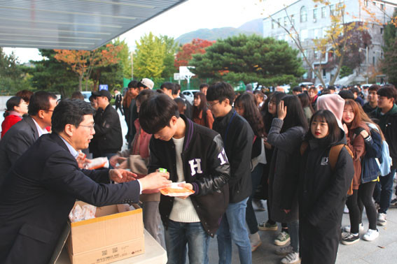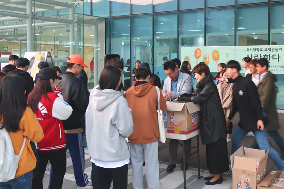 ¿ÃÇØ·Î 11³â°¸¦ ¸Â´Â ¡®Á¦ÀÚ»ç¶û »÷µåÀ§Ä¡ ³ª´®¡¯ Çà»ç´Â È£¼´ë ±³¼ö¿Í Á÷¿øµéÀÌ °øºÎÇÏ´Â ÇлýµéÀÇ ¿Á¤°ú ¼ö°í¸¦ °Ý·ÁÇϰí ÀÀ¿øÇϱâ À§ÇØ Á÷Á¢ ¸¸µç »÷µåÀ§Ä¡¸¦ Àü´Þ, ÀÛÀº »ç¶ûÀ» ÀüÇϱâ À§ÇØ ¸¶·ÃµÆ´Ù.