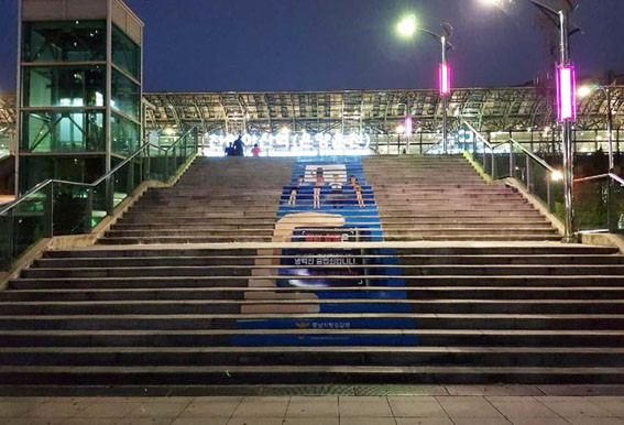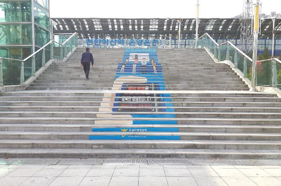 ù°·Î õ¾È¾Æ»ê¿ª ³»ºÎ·Î µé¾î°¡´Â ÀÔ±¸ °è´Ü¿¡ ºÒ¹ýÃÔ¿µ ±ÙÀýÀ» À§ÇÑ ·¡ÇÎ(wrapping£»Æ÷ÀåÀç·á, Æ÷ÀåÁö, Æ÷Àå) È«º¸¸¦ ½Ç½ÃÇß´Ù. °è´Ü¿¡ ºÎÂøÇÑ ·¡ÇÎÀº ±³Åë½Ã¼³ ³»ºÎ¿¡¼ ŸÀÎÀÇ Çã¶ô ¾øÀÌ Àº¹ÐÇÏ°Ô ½ÅüºÎÀ§¸¦ ÃÔ¿µÇÏ´Â ÇàÀ§°¡ ¸í¹éÇÑ Áß¹üÁËÀÓÀ» ¾Ë¸®°í ÀÖ´Ù.