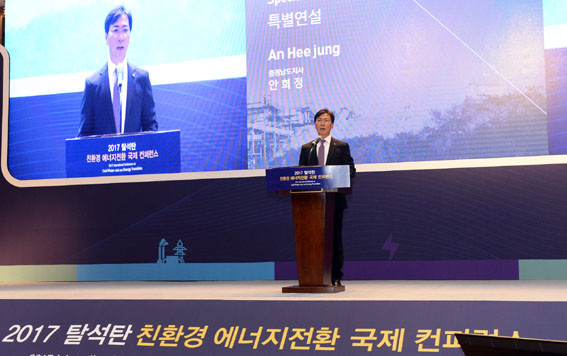 ¡®½Å ±âÈÄüÁ¦ÀÇ Å»¼®Åº Àüȯ¡¯À» ÁÖÁ¦·Î ÇÑ ¿¬¼³¿¡¼ ¾È Áö»ç´Â ¡°Ãæ³²Àº ¿ì¸®³ª¶ó ¼®ÅºÈ·ÂÀÇ 50%°¡ Áý°áÇØ ÀÖ°í, »ý»êÇÑ Àü±âÀÇ 60%¸¦ ¼öµµ±Ç Áö¿ª¿¡ º¸³»°í ÀÖ´Ù¡±¸ç ¡°¼®ÅºÈ·ÂÀÇ ¹Ì¼¼¸ÕÁö ¶§¹®¿¡ ¾ÆÀ̵éÀº ¸¶À½²¯ ¶Ù³îÁö ¸øÇϰí, ´ëÇѹα¹ ÇÏ´ÃÀº »Ñ¿¬ ¹Ì¼¼¸ÕÁö·Î µÚµ¤À̱â ÀϾ¥¡±¶ó°í ÁöÀûÇß´Ù.