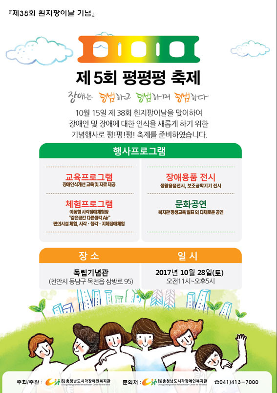 Æò!Æò!Æò! ÃàÁ¦´Â Á¦38ȸ ÈòÁöÆÎÀ̳¯À» ±â³äÇϰí Àå¾ÖÀÎ ¹× Àå¾Ö¿¡ ´ëÇÑ ÀνÄÀ» »õ·Ó°Ô Çϱâ À§ÇÑ Çà»ç·Î Àå¾ÖüÇè ºÎ½º¿î¿µ°ú º¸Á¶±â±¸ Àü½Ã, ¹®È°ø¿¬ µîÀ¸·Î ´Ùä·Ó°Ô ²Ù¸çÁú ¿¹Á¤ÀÌ´Ù.