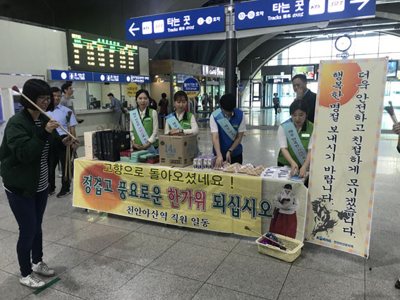 ÇѰ¡À§ Çà»ç¸¦ ÁغñÇÑ ±èºÀȸ õ¾È¾Æ»ê¿ªÀåÀº ¡°°íÇâ¿¡ °¡±âÀ§ÇØ Ãµ¾È¾Æ»ê¿ªÀ» ãÀº ¸ðµç °í°´ÀÌ Áñ°Ì°Ô ¿©ÇàÀ» ½ÃÀÛÇÒ ¼ö ÀÖµµ·Ï À̹ø À̺¥Æ®¸¦ ÁغñÇß´Ù.¡±¸ç ¡°Ãß¼® ¸íÀý ±â°£ °í°´µéÀÇ ¾ÈÀü È®º¸¸¦ À§ÇØ Àü Á÷¿øÀÌ ÃÖ¼±À» ´ÙÇϰڴÙ.¡±°í ¸»Çß´Ù.