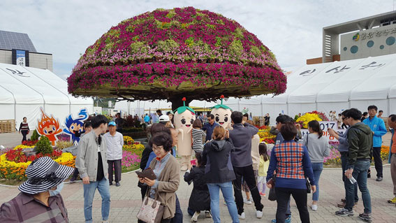 | | ¨Ï ¿Â¾ç½Å¹® | | ±Ý»ê À묽ºÆ÷±¤ÀåÀÇ Áß¾Ó¿¡ À§Ä¡ÇÑ ¡®±â¿øÀÇ ³ª¹«¡¯´Â ¿¢½ºÆ÷ÀåÀ» ãÀº °ü¶÷°´µéÀÇ °Ç°°ú ¸¸¼ö¹«°À» ±â¿øÇÏ´Â °ø°£À¸·Î ³ôÀÌ 7mÀÇ °Å´ëÇÑ ²É³ª¹« Á¶Çü¹°ÀÌ 360µµ·Î ȸÀüÇϰí ÀÖÀ¸¸ç ±× ¾Æ·¡¿¡´Â ÇüÇü»ö»öÀÇ °¡À»²ÉÀÌ È´ÜÀ» ¼ö³õ¾Æ ¿¢½ºÆ÷ÀåÀÇ ·£µå¸¶Å©·Î ¶°¿À¸£°í ÀÖ´Ù.