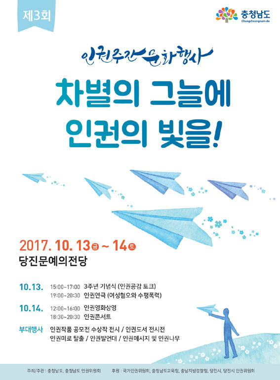 Ãæ³²µµ´Â ¿À´Â 10¿ù 13¡14ÀÏ ´çÁø ¹®¿¹ÀÇ Àü´ç¿¡¼ ¡®Â÷º°ÀÇ ±×´Ã¿¡ ÀαÇÀÇ ºûÀ»¡¯À» ÁÖÁ¦·Î ¡®Á¦3ȸ ÀαÇÁÖ°£ ¹®ÈÇà»ç¡¯¸¦ °³ÃÖÇÑ´Ù°í ¹àÇû´Ù.