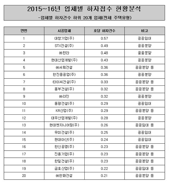 °ÈÆ½Ä ÀÇ¿øÀÌ Çѱ¹ÅäÁöÁÖÅðø»ç(LH) ÀڷḦ ºÐ¼®ÇØ Áö³ 10¿ù 11ÀÏ °ø°³ÇÑ °á°ú¿¡ µû¸£¸é, 2015³â 1¿ùºÎÅÍ 2016³â 12¿ù±îÁö ¾ÆÆÄÆ® ÇÑ Ã¤´ç ÇÏÀڰǼö°¡ ³ôÀº »óÀ§ 20°³ ¾÷ü¿¡ Çö´ë»ê¾÷°³¹ß, µ¿ºÎ°Ç¼³, Çö´ë¿£Áö´Ï¾î¸µ, ÇÑȰǼ³ µî ´ëÇü °Ç¼³»ç°¡ ´Ù¼ö Æ÷ÇԵƴÙ.