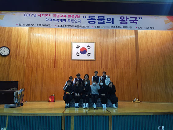Çб³Æø·Â¿¹¹æ Åä·Ð¿¬±Ø ¡®µ¿¹°ÀÇ ¿Õ±¹¡¯Àº Àü³²µµ±³À°Áö¿øÃ»¿¡¼ Áö¿ø¹Þ¾Æ ¾Æµ¿, û¼Ò³âµéÀ» ´ë»óÀ¸·Î Ȱ¹ßÈ÷ Ȱµ¿Çϰí ÀÖ´Â ±Ø´Ü ¡®»õ°á¡¯¿¡¼ ÁøÇàÇÏ´Â ¿¬±ØÀ¸·Î Çб³ ÇöÀå¿¡¼ ¹ú¾îÁú ¼ö ÀÖ´Â Çб³Æø·ÂÀÇ »ç·Ê¸¦ ¿¬±ØÀ¸·Î À籸¼ºÇϰí, Âü¿© ÇлýµéÀÌ °ø¿¬°ü¶÷ ÈÄ °ü°´°ú ¹è¿ì·Î Á÷Á¢ Âü¿©ÇØ Àû±ØÀûÀ¸·Î Çб³Æø·Â »óȲ¿¡ ´ëÇÑ ¼ºÂû°ú ÇØ°á¹æ¾ÈÀ» ÇÔ²² ¸ð»öÇØº¸´Â Çü½ÄÀ¸·Î ÁøÇàµÆ´Ù.