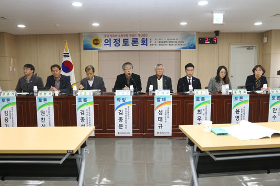 Ãæ³²µµÀÇȸ´Â 11¿ù 22ÀÏ Ãæ³²±³À°¿¬±¸Á¤º¸¿ø¿¡¼ ¡®Ãæ³² û¼Ò³â ³ëµ¿À뱂 Çö½Ç°ú °³¼±¹æ¾È¡®À» ÁÖÁ¦·Î ÀÇÁ¤Åä·Ðȸ¸¦ °³ÃÖÇß´Ù.