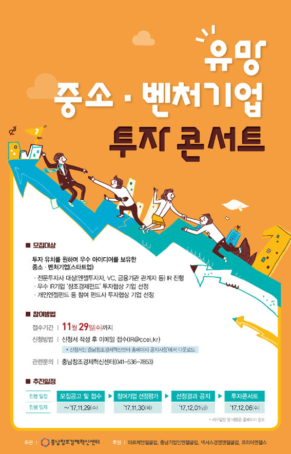 Ãæ³²Ã¢Á¶°æÁ¦Çõ½Å¼¾ÅÍ(ÀÌÇÏ Ãæ³²¼¾ÅÍ)´Â 12¿ù 6ÀÏ KTXõ¾È¾Æ»ê¿ª»ç¿¡ À§Ä¡ÇÑ Ãæ³²Ã¢Á¶°æÁ¦Çõ½Å¼¾ÅÍ¿¡¼ ¿ì¼ö ¾ÆÀ̵ð¾î¸¦ °¡Áø Áö¿ª Áß¼Ò¡¤º¥Ã³ ¹× Ãʱâ â¾÷±â¾÷¿¡°Ô ÅõÀÚÀ¯Ä¡ ±âȸ Á¦°øÀ» À§ÇÑ ¡®À¯¸Á Áß¼Ò¡¤º¥Ã³±â¾÷ ÅõÀÚÄܼƮ¡¯¸¦ °³ÃÖÇÑ´Ù°í ¹àÇû´Ù.