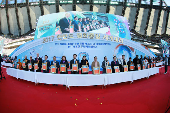 ¡®2017 Çѹݵµ ÆòÈÅëÀÏ ¼¼°è´ëȸ Á¶Á÷À§¿øÈ¸(ÀÌÇÏ Á¶Á÷À§¿øÈ¸)¡¯´Â ¡®2017 Çѹݵµ ÆòÈÅëÀÏ ¼¼°è´ëȸ¡¯¸¦ Áö³ 11¿ù 11ÀÏ ¼¿ï »ó¾Ïµ¿¿¡ À§Ä¡ÇÑ ¿ùµåÄŰæ±âÀå¿¡¼ 70¿© °³±¹ Á¾±³¡¤Á¤Ä¡ÁöµµÀÚ 2õ¿© ¸í µî Çѹݵµ Æòȸ¦ ¿°¿øÇÏ´Â ´ëÇѹα¹ ±¹¹Î 8¸¸ ¸íÀÌ ¸ðÀÎ °¡¿îµ¥ °³ÃÖÇß´Ù°í ¹àÇû´Ù.