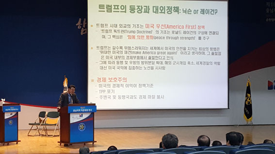 ±×¸®°í ÀüÀÏ¿í(´Ü±¹´ë) ±³¼ö´Â ¡®Çѹݵµ ÆòÈ¿Í ¹ø¿µÀÇ ±æÀ» ¹¯´Ù¡¯¸¦ ÅëÇØ ¹®ÀçÀÎÁ¤ºÎÀÇ ³²³²°¥µî°ú ³²ºÏ°¥µîÀÇ ÇØ¹ýÀ¸·Î È®°íÇÑ ³²ºÏÀ» ³Ñ¾î Áß±¹°ú ·¯½Ã¾Æ·ÎÀÇ °æÁ¦ Á¤Ã¥À» ½Ç½ÃÇÒ °ÍÀ» ÁÖÀåÇß´Ù.