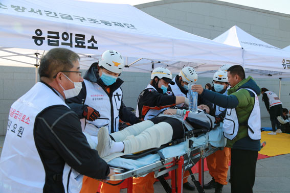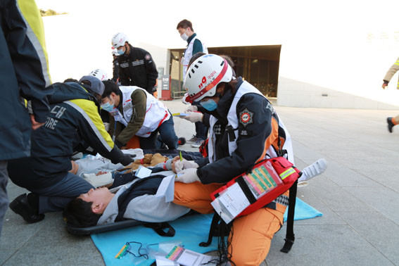 ±èµæ°ï ¼ÀåÀº ¡°À̹ø ÈÆ·ÃÀº ´Ù¼ö»óÀÚ ¹ß»ý ½Ã ½Å¼ÓÇÑ ±¸Á¶¿Í ÀÀ±Þóġ, ÁßÁõµµ ºÐ·ù ¹× ȯÀÚÀ̼Û, À¯°ü±â°ü °£ ÇùÁ¶Ã¼°è À¯Áö µî ½ÇÁúÀûÀÎ Ãʱ⠴ëÀÀÀ» ÇÒ ¼ö ÀÖµµ·Ï ÀÀ±ÞÀÇ·á ´ëÀÀ¿ª·® °È ÈÆ·ÃÀÌ ÀÌ·ïÁöµµ·Ï ÇÏ´Â Â÷¿ø¿¡¼ Àǹ̰¡ ÀÖ´Ù¡±¸ç ¡°¾ÕÀ¸·Îµµ ½ÇÀü°ú °°Àº ÈÆ·ÃÀ¸·Î ½Ã¹ÎÀÇ ¾ÈÀüÀ» À§ÇØ ÃÖ¼±À» ´ÙÇϰڴ١±°í ¸»Çß´Ù.