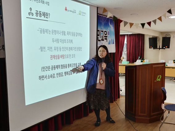 2ºÎ ¼ø¼·Î´Â ±èÀ±Á¤ »çȸº¹Áö»ç°¡ Âü¿©ÁֹεéÀ» ´ë»óÀ¸·Î ¡®ÁÖ¹ÎÁ¶Á÷È ÁֹΠ±³À°¡¯À» ÁøÇàÇÏ¿´´Ù. ±³À°À» ÅëÇØ¼ Áֹε鿡°Ô ÁÖ¹ÎÁ¶Á÷ȶõ ¹«¾ùÀÎÁö¿¡ ´ëÇØ¼ ¼Ò°³Çϰí, ¿Ö ÁÖ¹ÎÁ¶Á÷È »ç¾÷ÀÌ ¿ì¸® ¸¶À»¿¡ ÇÊ¿äÇÑÁö¿¡ ´ëÇØ Áֹεé°ú ±íÀº ¼ÒÅëÀ» ³ª´©¾ú´Ù.