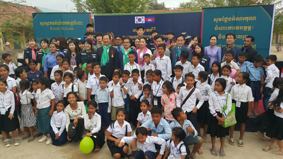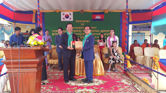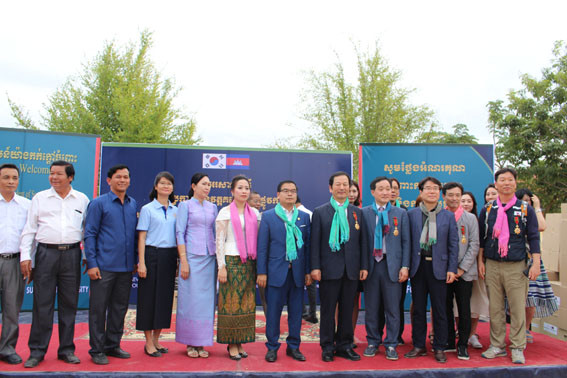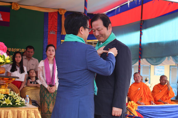 ¼ö¿©½ÄÀº įº¸µð¾Æ ÇÁ·¹À̺¬ÁÖ((Prey Veng Province)¿¡ ÀÖ´Â ´ÏÅ©·Î¾û ÃʵîÇб³¿¡ ¸¶·ÃµÈ Çà»çÀå¿¡¼ įº¸µð¾Æ Á¤ºÎ¸¦ ´ëÇ¥ÇØ À¯Å© ¹ö³ª(H.E. Youk Bunna) ÇàÁ¤ºÎ Â÷°ü °â ¿Õ¸³ÇàÁ¤Çб³ ÃÑÀåÀÌ ±¹¿Õ ¸íÀÇÀÇ ÈÆÀåÀ» ¼ö¿©Çß´Ù.